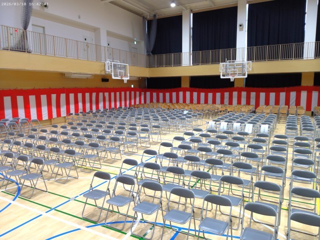 私は会場設営の現場に立ち会いましたが、先生方や主事さんと一緒に紅白幕を張り巡らしたり、パイプ椅子を並べたりと活気のある会場設営でした。
