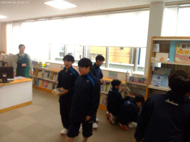 今日は1年生が、学習情報センター(図書室)の使い方を司書さんから教わりました。