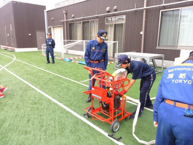 さて、今年度の防災ジュニアスタッフ訓練では、D級ポンプだけでなく、地域防災にもっと密接な経験ができるよう、高松出張所の所長さんや、学校運営委員でもある消防団員の方々(実は町会長さん!)とも計画を検討しています。