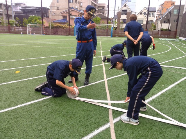 校長先生は千川中の防災ジュニアスタッフ訓練を見るのは初めてでしたが