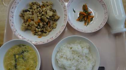 5月17日(火) ・ごはん ・炒り豆腐 ・ナムル ・中華コーンのスープ