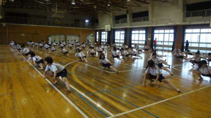 5月17日(火)6校時に2、3年生は合同練習を行いました。女子は、体育館いっぱいに響き渡るかけ声で、元気よくソーラン節を踊っていました。男子は、組み体操の流れを確認し、一人一人が集中して真剣に取り組んでいる様子が伝わりました。