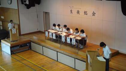 6月8日(水)5時間目は生徒総会を行いました。各委員会の活動計画等について審議をすることで、生徒会の意味を再認識させ,より組織としての活動を活性化させるために行います。