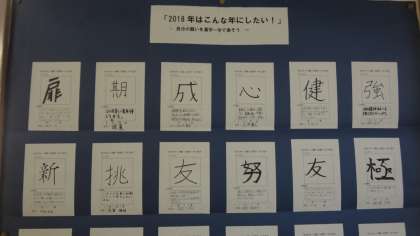 12月14日(木)3年生は、国語の授業で来年への想いを表す漢字を書きました。卒業や受験勉強に向けて、前向きな目標を表すような漢字が多く見られました。