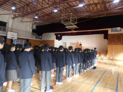 1月8日(火)3学期始業式が行われ、校長先生から3学期の過ごし方についてのお話がありました。また、明るい選挙ポスターコンクールと税の作文コンクールの表彰が行われました。