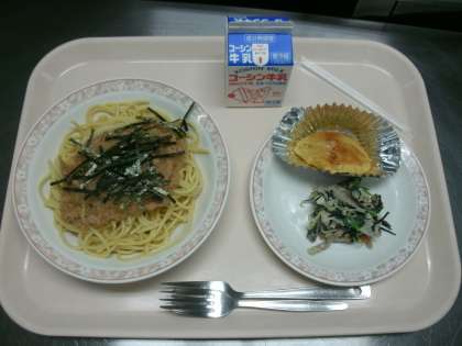 牛乳 ツナおろしスパゲッティ ひじきとチーズのサラダ スイートポテト