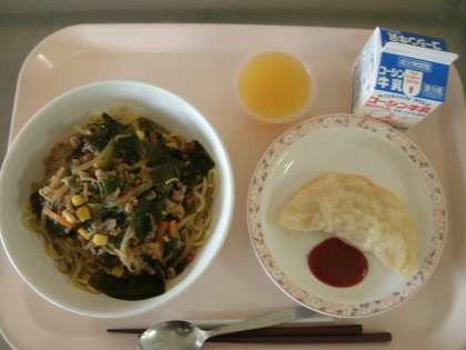 牛乳 担々麺 ツナとポテトのサモサ オレンジゼリー