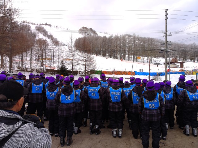 ランチタイム後には、全員でゲレンデに並んで集合写真を撮りました。参加者全員での写...