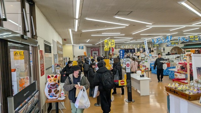 この地方に宿泊行事で来た学校の多くが立ち寄る、定番の土産物屋さんに到着。ギリギリ...