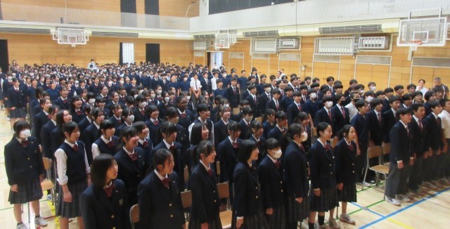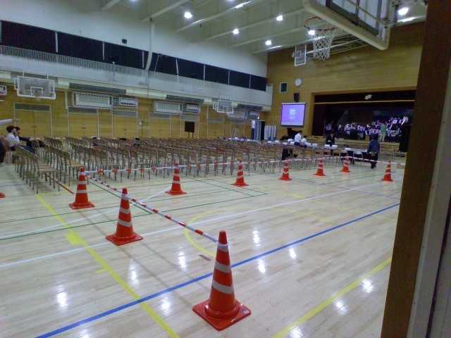 会場は、生徒が中央に着席し保護者の皆様には左右と後方の立ち見スペースでご覧いただきます。