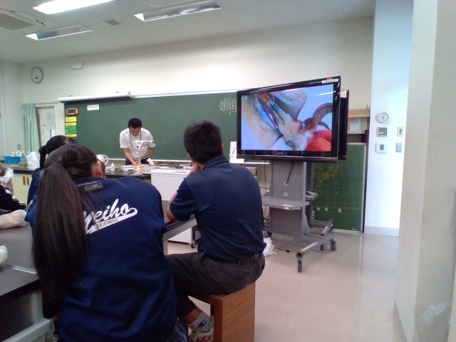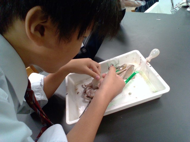 2学年理科の授業で、無脊椎動物のスルメイカの解剖を行いました。