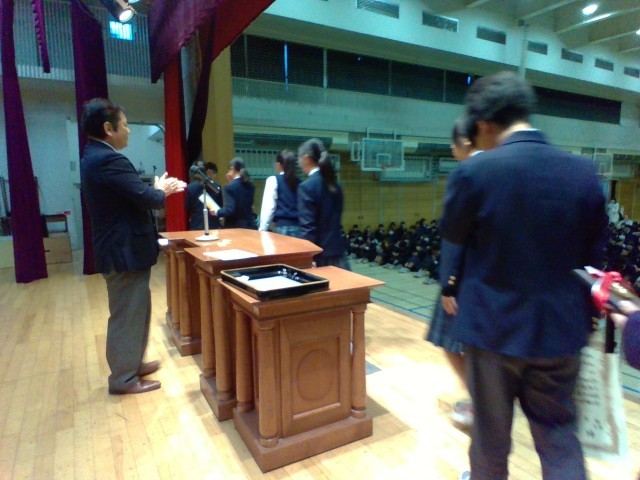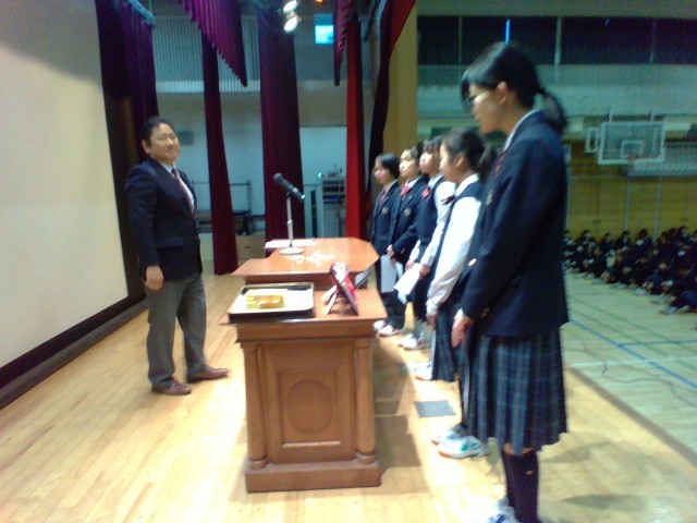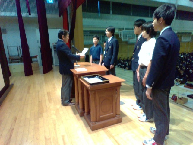 部活動では、テニス部、技術部ロボットコンテストを表彰しました。