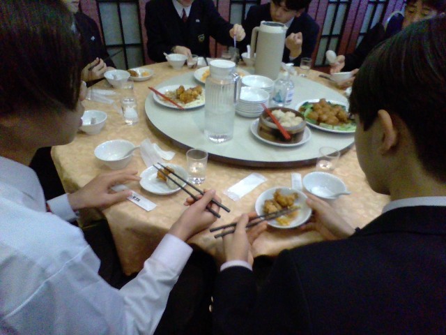 昼食は、チャーハンやエビチリ、肉団子や杏仁豆腐をいただきました。