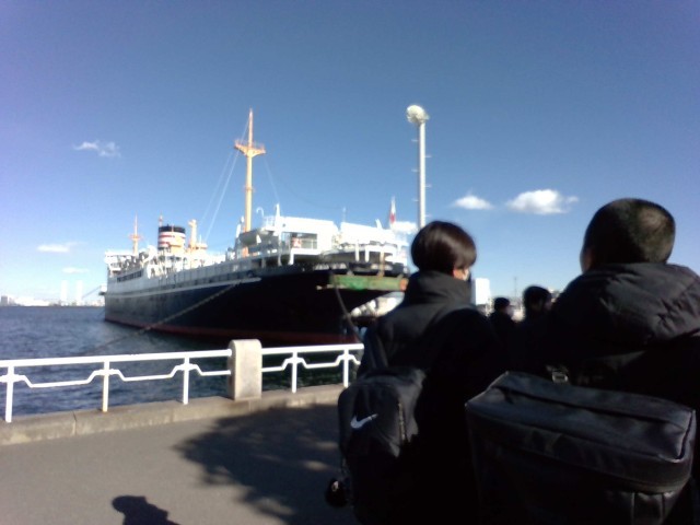今回、氷川丸は塗装作業のため横を通って外観を見学しました。
