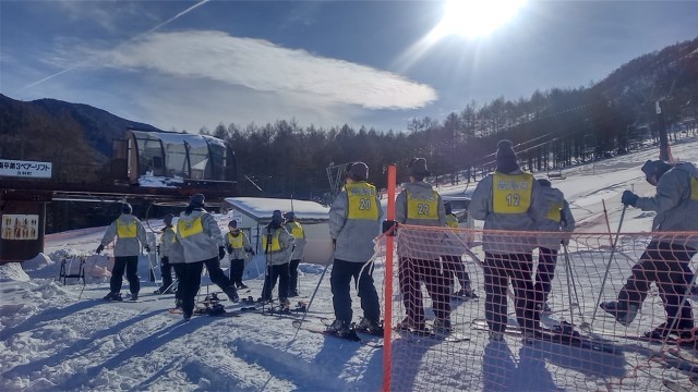 最終日の講習が始まりました。今日は全班ゲレンデ上部を目指します!