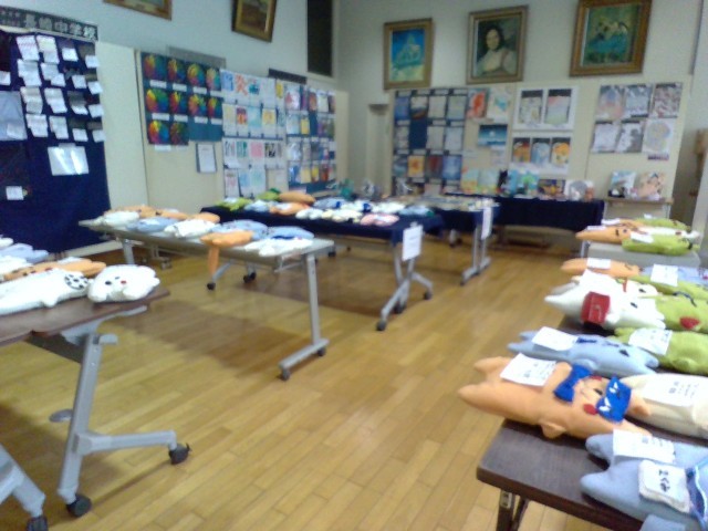※受付 メモリアルホールには3学年の家庭科の作品や展覧会に出品した作品が展示してあります。ぜひご覧ください。