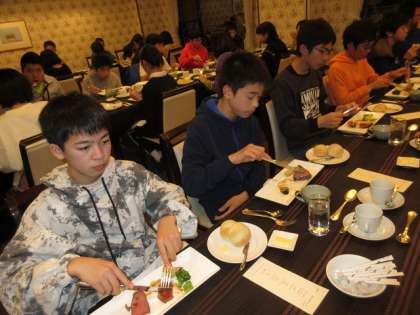 宿舎に帰って入浴後に夕食です。フランス料理のコースでその後、係会、部屋会議,就寝です。