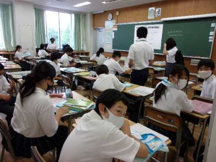 9:00から1・3年生の登校日です。予想外の豪雨の中での登校でしたが、多くの生徒が登校していました。各学級で夏休みの宿題の提出や夏休み中の様子をうかがうことがねらいです。特に夏休みの宿題が終わりそうもない生徒は、夏休み自習教室の参加をうながして取り組ませています。2年生の登校日は、26日(木)9:00からになります。