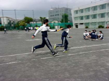 今日は、2時間授業で、公開授業後の11:00から部活動保護者会を実施します。写真は、1時間目の授業の様子です。左から1年生の音楽で歌唱の授業、2年生の理科で化学式の授業、3年生の保健体育でリレー競技の授業です。みんな集中して授業に取り組んでいました。