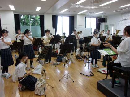 写真は、吹奏楽部、技術部、女子バレーボール部です。吹奏楽部は、明豊祭に向けての練習を行っていました。技術部は、ロボットコンテストに向けたロボット製作、女子のバレーボール部は、あさって日曜日の新人大会に向けて練習を行っていました。