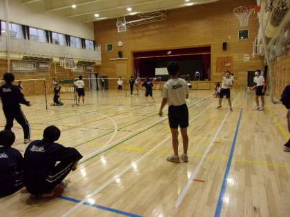 体育は、バドミントンの授業です。ただゲームをするだけでは無く、6チームで、団体戦を行い、勝敗を競う喜びや応援する楽しさを味わいながら仲間と協力し、主体的にスポーツに取り組む工夫がされた授業でした。