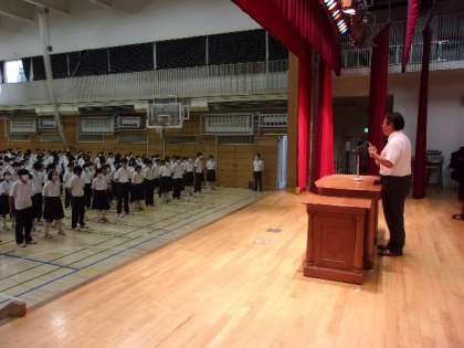 生徒表彰では、吹奏楽部の表彰がありました。吹奏楽コンクールで銀賞を受賞しました。よく頑張りました。コンクールで演奏した曲は、10月の明豊祭で披露します。楽しみです。