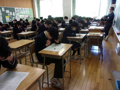 本日より学年末考査が始まりました。今日は、数学、保健体育、音楽です。27日(火)は、国語、英語、技術家庭、28日(水)は、理科、社会、美術になります。本日と明日は、給食がありません。写真は、音楽の様子です。みんな真剣に取り組んでいました。
