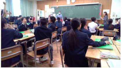 カーン先生の自己紹介では、クイズを交えながら説明を聞いたり、質問に答えたりしていました。幼少期から世界60カ国ほど転居していたことや高校や大学でも英語を教えている経験など、生徒からの質問にも丁寧に答えてコミュニケーションを楽しみながら学習を進めています。
