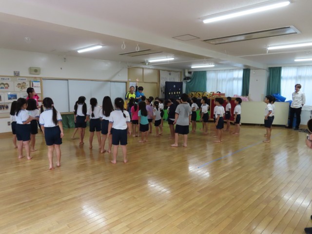 今日の午前中は、西巣鴨小学校1年1組のお兄さん、お姉さんが幼稚園に来てくれました。先週の1年2組の皆さんに引き続き、芸術家と子供たちのアーティストの先生に、体を楽しく動かして表現するワークショップをしていただきました。1組には、西巣鴨幼稚園の修了児もいたのでとても懐かしかったです。一緒に運動できてうれしかったです。