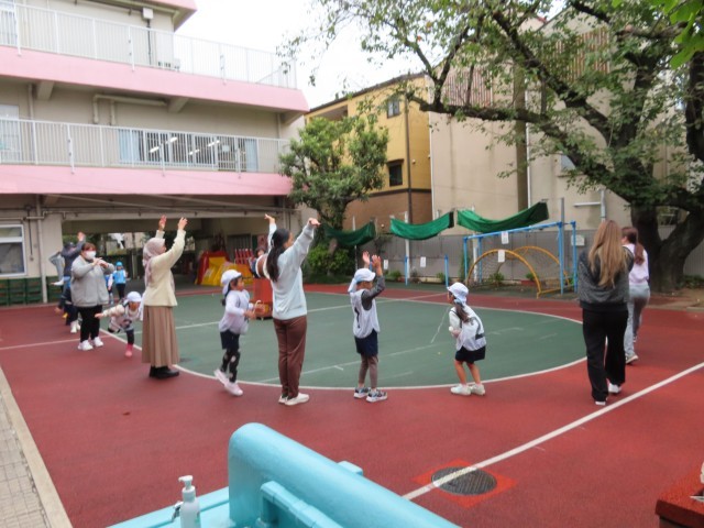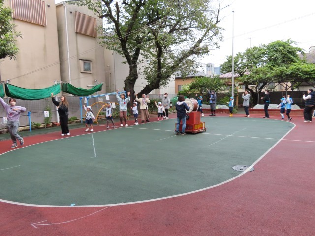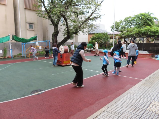 今日は、わくわくタイムで運動会の親子競技「おみこしわっしょい」と全員ダンス「みんなで盆踊り」の練習をしました。「おみこしわっしょい」では、はじめておうちの人と一緒におみこしを運ぶリレーをしました。「みんなで盆踊り」では、2曲踊りました。簡単な踊りなので運動会本番では、来ていただいた会場の皆さんと一緒に踊りたいです。