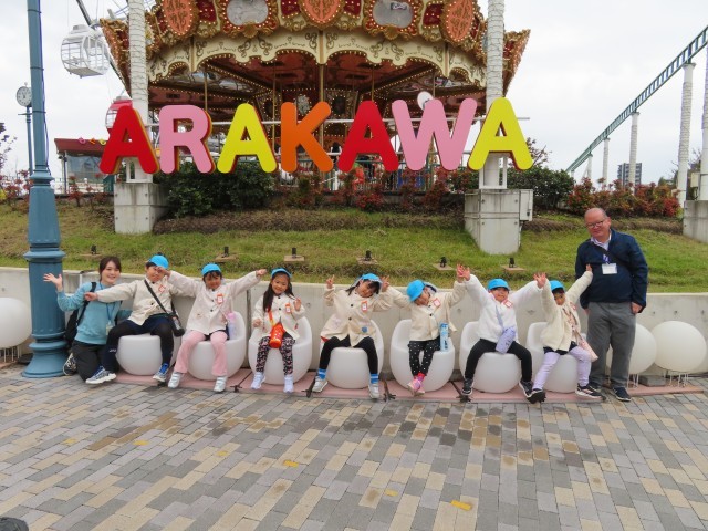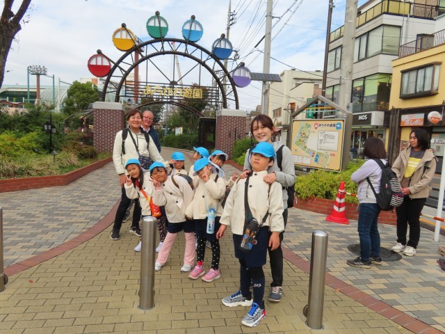 今日は、あらかわ遊園に遠足に行きました。最初に「豆汽車」に乗りました。運転手さんが、ゆっくり走ってくれて動物のことを教えてくれました。次にシューティングをしてから観覧車に乗りました。とても高いところまで上がったので遠くの景色までよく見えました。次はジェットコースターに乗りましたが、とても混んでいました。そして、動物の餌やりをしました。最初は少し怖かったですが、おいしそうに食べてくれました。ロング滑り台を滑ってから、午前中の最後にメリーゴーランドに乗ってからお弁当になりました。午後は、スカイウォーク(自転車)、ふわふわドーム、最後にもう一度、ロング滑り台をしました。いっぱい遊んで楽しかったです。みんなで遊園地、最高でした!