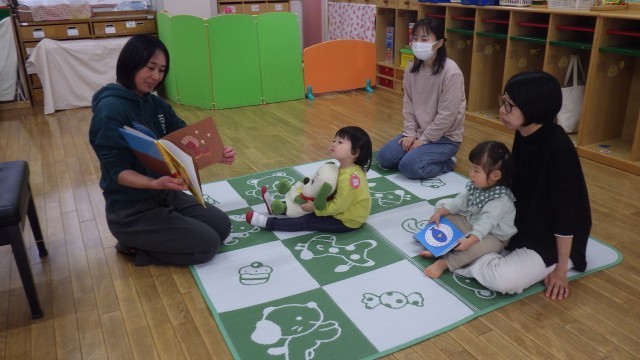 最後に机上で出席シールを貼ると、とてもうれしそうにしていました。椅子に座る姿はかわいかったです。