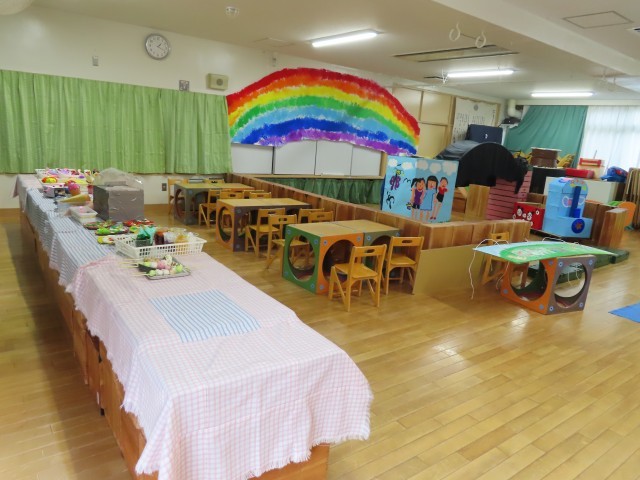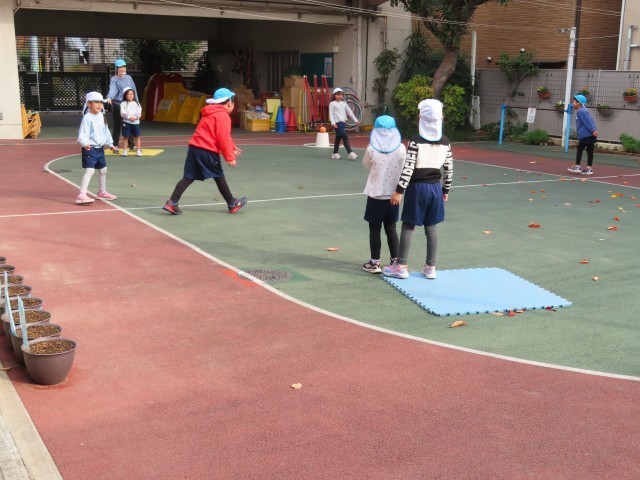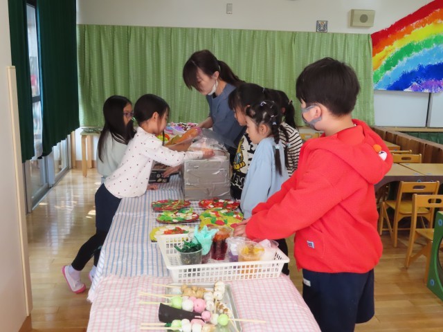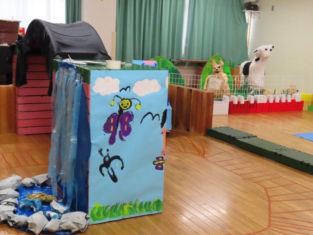 今日も遊園地製作の続きをしました。新しい商品を作ったり、看板を作ったり、コースに滝と池を作ったり、アイデアがどんどん湧いてきます。お弁当の前に遊園地の名前を決めました。「ほしぐみらんど」に決まりました。来週の「ほしぐみらんど」開園に向けて頑張ります。午後は、園庭で「宝とりゲーム」をしました。みんな上手になってきたので、なかなか決着がつきませんでした。周りの友達の動きをよく見て宝を取りにいったり、お友達を助けたりして楽しんでいました。