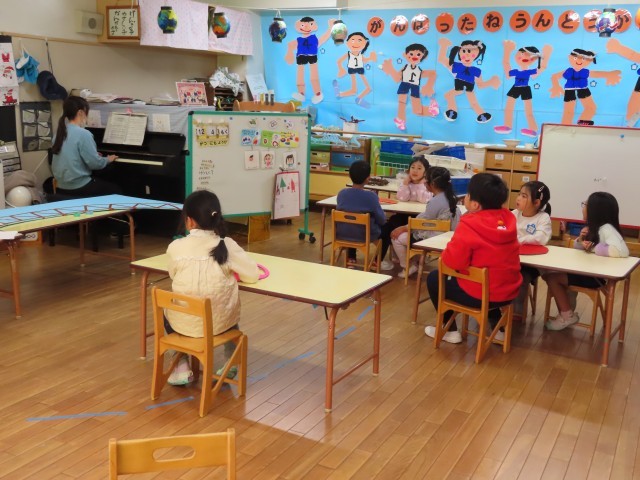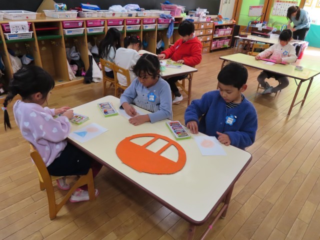 今日は、毎日歌っている「ありがとうの花」の練習を頑張りました。歌詞を覚えるのが少し大変ですが、みんな頑張って歌っています。「ほしぐみランド」の看板につける観覧車も作りました。作品展のほうも飾り付けが順調に進んでいます。