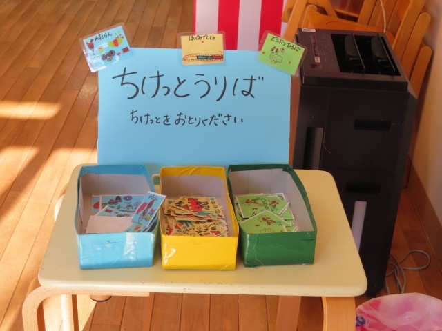 今日も来週開園する「ほしぐみランド」の準備を進めました。今日はキャストの衣装を作りました。どんな衣装になったか楽しみにしていてください。昨日は、電車やどうぶつひろば、レストランのチケットを作って試しに今日はみんなで遊んでみました。来週お客さんを迎えるのが楽しみです。