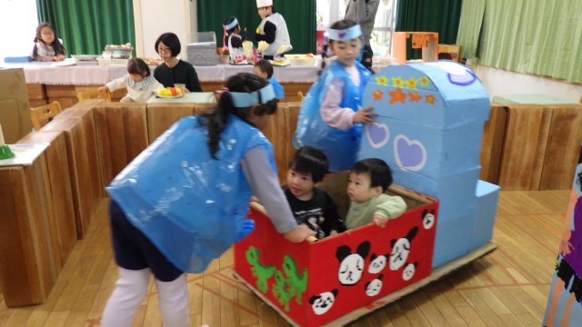遠足で行った荒川遊園地の思い出を形にして、ほしぐみでんしゃ、どうぶつひろばができあがりました。