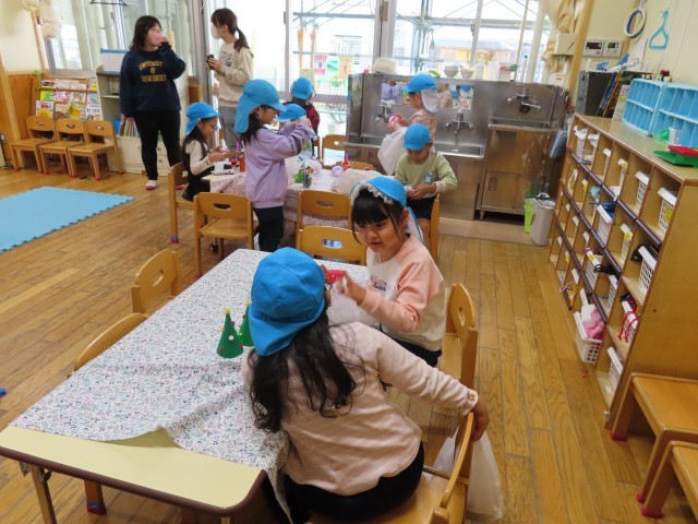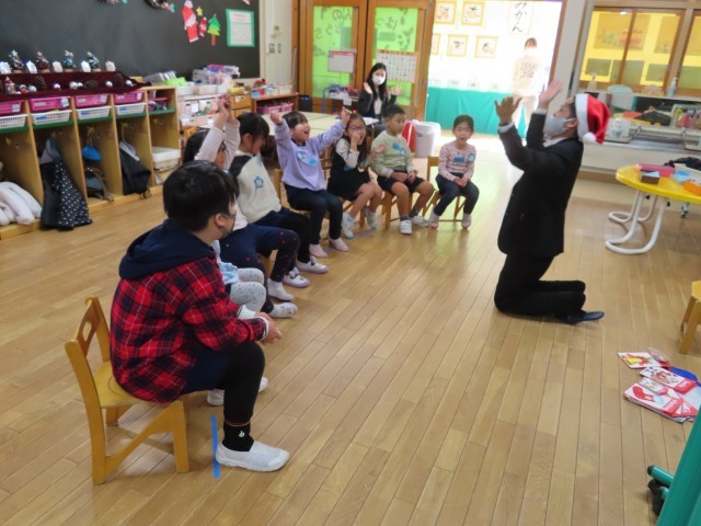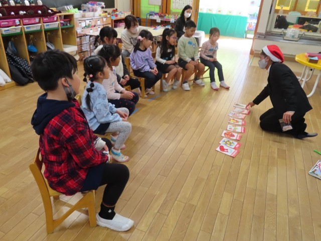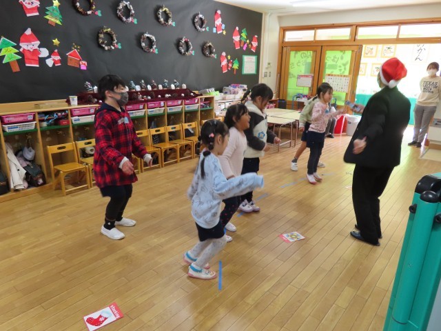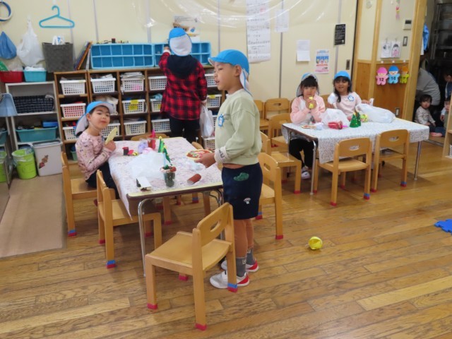 今日は、西巣鴨第三保育園の「お店屋さんごっこ」に参加してきました。いろいろなお店に招待してもらって、お土産もたくさんもらいました。同じ小学校に行くお友達もいるので交流を通して仲良くなってきました。三学期も交流する予定なので楽しみです。保育園から帰ってきた後は、英語活動がありました。この前から教えてもらっているLio先生がクリスマスにちなんだアクティビティとゲームをしてくれました。いっぱい英語を使って活動することができるようになりました。