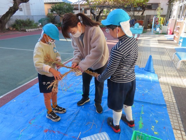 今日からお正月飾りを作り始めました。お友達と協力して縄をみつあみにしました。これから飾りつけをしていきます。出来上がりが楽しみです。そして、今日までたくさん遊んだ「ほしぐみランド」が最終日となりました。今日もお友達と役割を交換して遊びました。いろいろなお客さんが来てくれて、たくさん褒めてくれたのでうれしかったです。