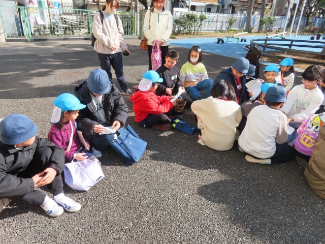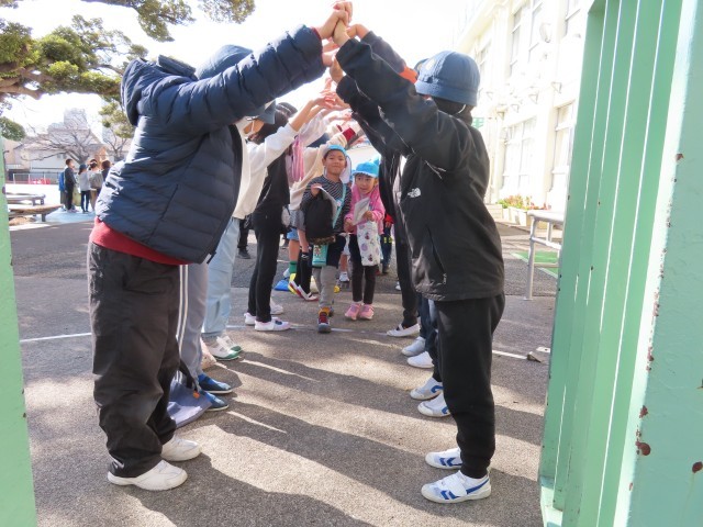 今日は、子ども会で使う衣装を作ったり、背景画を塗ったりしてから小学校に交流活動に行きました。5年生が学校の中を案内してくれたり、絵本の読み聞かせをしてくれました。5年生のお教室に案内してくれて、席に座らせてくれました。お教室では、文字を教えてくれて、算数の計算も教えてくれました。5年生からお手紙ももらってすごくうれしかったです。最後にアーチを作ってくれて見送ってくれました。西巣鴨小学校の5年生は、みんなとても優しかったです。楽しい1日でした。