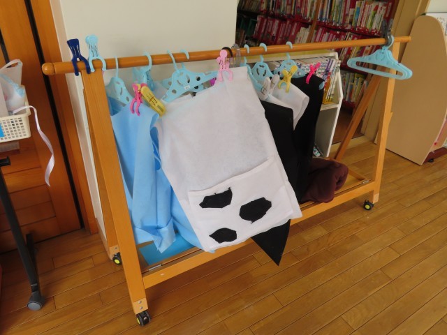 今日は、衣装づくりの続きと劇で使う小道具を作りました。帰る前に劇の練習を1場面しました。1場面ずつ練習をしていきます。