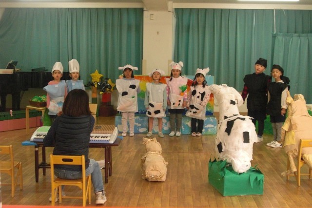 今週土曜日の「子ども会」に向けて仕上げの練習に取り組んでいます。劇は、最後の2場面と最後の歌の練習をしました。セリフの言い方や場面に合った演技が上手になってきました。効果音のタイミングもよくなってきました。午後に、合奏と歌、「はじめのことば」、「おわりのことば」の練習もしました。