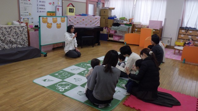 ごあいさつとおなまえよびの後はてあそびやだるまさんの絵本を読んで楽しみました。