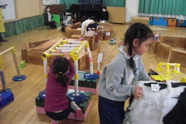 今日の午後は、公開保育でした。豊島区教育委員会の先生と豊島区の保育園・幼稚園・小学校の先生方がほしぐみの「好きな遊び」の様子を見に来てくださいました。お客さんがいっぱいいたので、少し緊張しましたが楽しく遊べました。先生たちに褒めてもらってとてもうれしかったです。明日も楽しく遊びたいです。