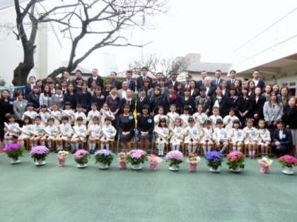 29名一人一人が修了証書を受け取り、おうちの方に2年間の感謝の言葉を添えて渡しました。おうちの方は、成長した姿に温かい言葉を贈ったり、ぎゅっと抱きしめたりしながら愛情いっぱいに答えていらっしゃいました。
