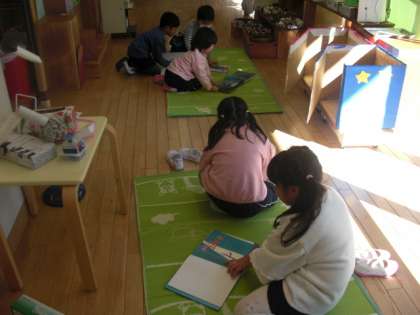 今日は、1日幼稚園でゆっくり過ごしました。ももぐみは、久しぶりに外で元気に遊べました。ほしぐみは、お弁当の後、絵本を読みながら食休みをした後に、ももほしランドに向けて準備を頑張りました。