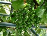 園庭の砂場の上には、ブドウとキウイが大きく実をつけています。その横には、青々とし...