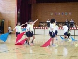 年長組の旗の演技を真似していた年少組さん。きっと来週は一緒に取り組む姿が見られることでしょう。