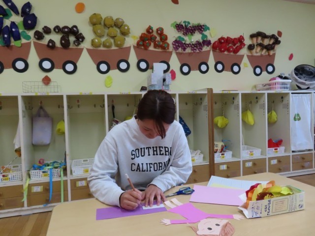たくさんありますがその一つに、今日の保育や子どもたちの様子を振り返りながら、「明日はどんなことをしようかな?」「こんな経験をさせてあげたいな。」と考えて準備をしています。
