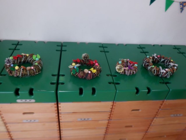 素敵なリースが出来ました。お家に飾ってクリスマスまでの日を楽しんで欲しいと思います。