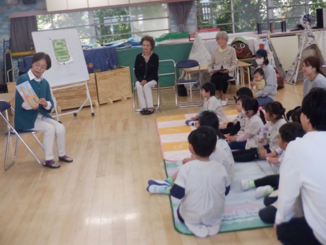『やさしいライオン』と『ばけばけばけばけ ばけたくん ばけくらべの巻』の2冊を読んでいただきました。優しい声に耳を傾け、絵本をじっくりと見ていました。